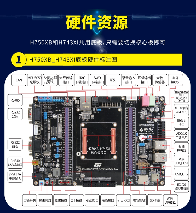 野火电子主营STM32、ⅰMXRT开发板及周边配套模块。配套的程序,教程,视频全部开源。