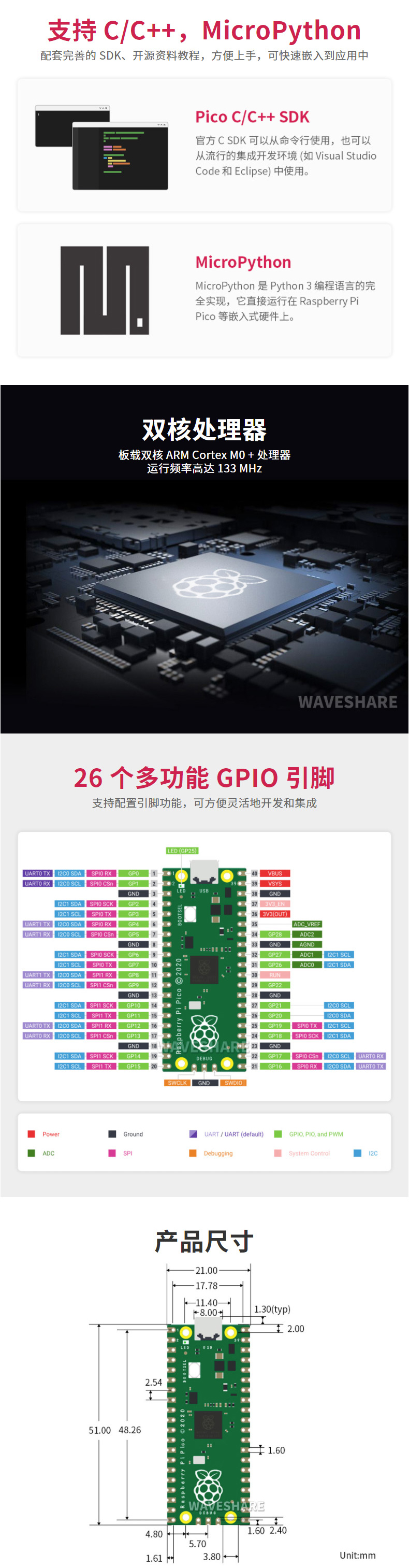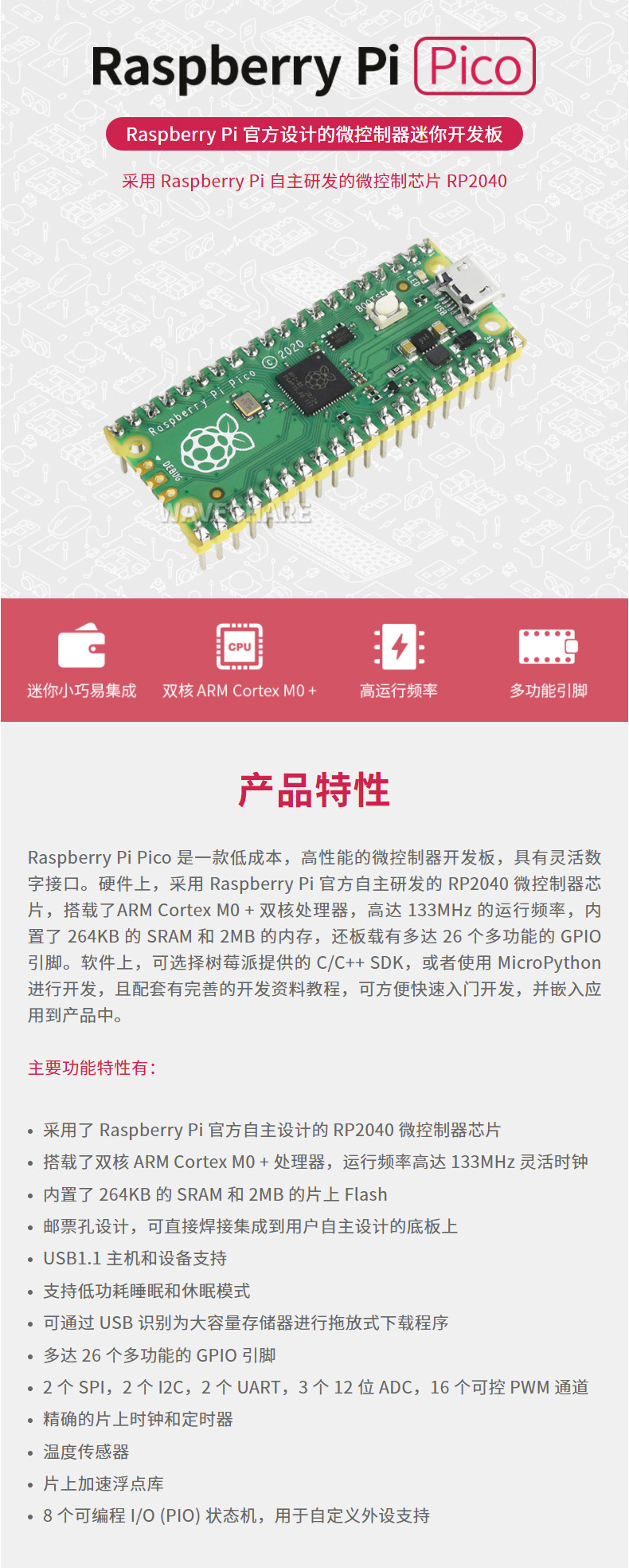 树莓派pico Raspberry Pi Pico RP2040双核处理器 带排针传感器---试用资格